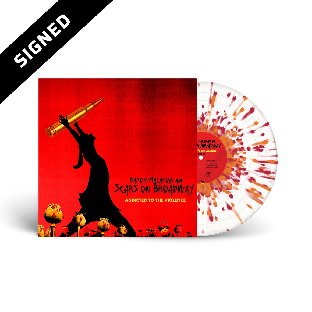Daron Malakian and Scars On Broadway’s third studio album, Addicted To The Violence, pressed on a white, red, and orange splatter vinyl. Features the new single "Killing Spree."
